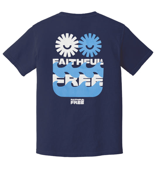 "Faithful & Free" Waves - Navy Tee
